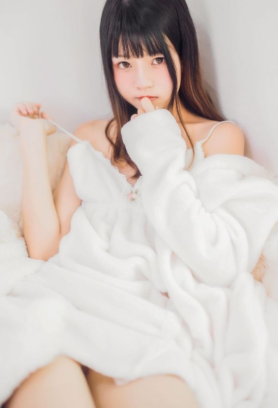 如果你想了解一个充满温暖与纯真氛围的Cosplay作品,那你肯定不能错过桜桃喵的《冬眠》。在这组图中,桜桃喵以一袭白色的睡裙搭配着毛茸茸的帽子,躺在柔软的毛毯上,仿佛是进入了一个冬天的梦境。她静静地坐在一堆毛绒玩具和毛毯之间,清新的气氛和她那天真无邪的表情形成了完美的对比。她的眼神虽然温柔,但也带着一丝若有若无的思索,仿佛在沉浸于自己的世界中。