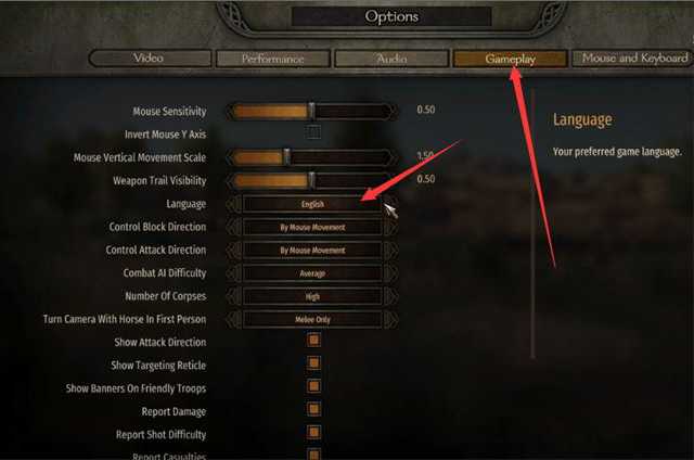 3、最上方选中Gameplay,找到Language下的简体中文,然后保存游戏;