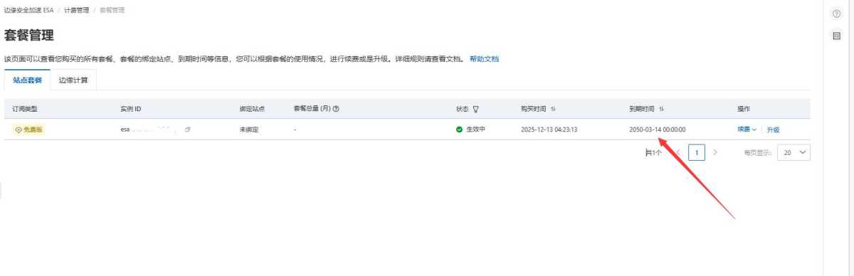 2、选择免费版勾选,然后 0 元下单购买(全程无付费项)解锁 2050 年长期使用权:购买成功后,点击【套餐管理】→ 找到【续费】按钮 → 选择【设置续费规则】系统会自动跳转续费页面,选择「续费 1 年」(依然 0 元!),反复操作 25 次,就能直接把有效期刷到 2050 年啦!