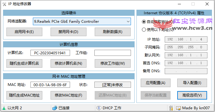 IP 与 MAC 地址修改:支持修改本地网卡的 IP 地址、子网掩码、网关等参数,可修改或恢复网卡 MAC 地址;