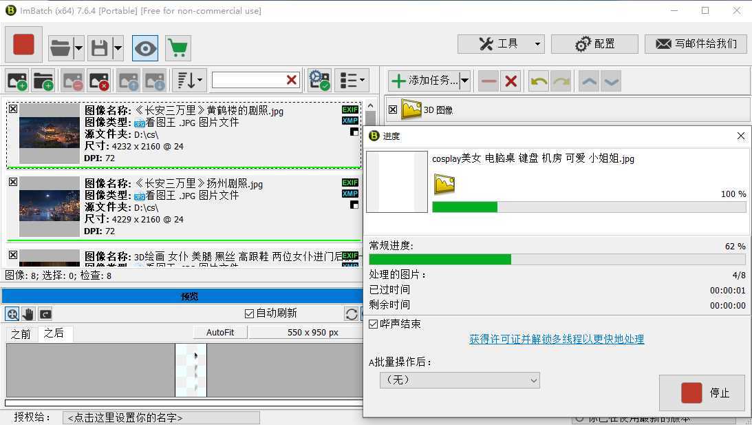 4. 免费软件:ImBatch是一款完全免费的软件,无需支付任何费用,用户可以自由使用它。