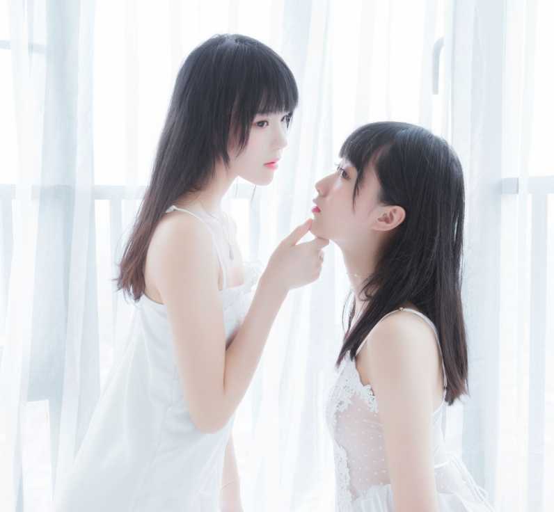最让小编挪不开眼的是她们之间的互动。瞧瞧那张侧颜互动的片子,樱桃喵轻轻挑起木绵绵的下巴,那种似有若无的眼神拉丝,简直把百合美学的意境感给拉满了。没有那种刻意的造作,就是一种很自然的、清晨起床后的亲昵感。白色的蕾丝边吊带裙,配上那种略带迷茫又清冷的神情,这种纯洁与诱惑的平衡,真的是被这两位玩得明明白白的。